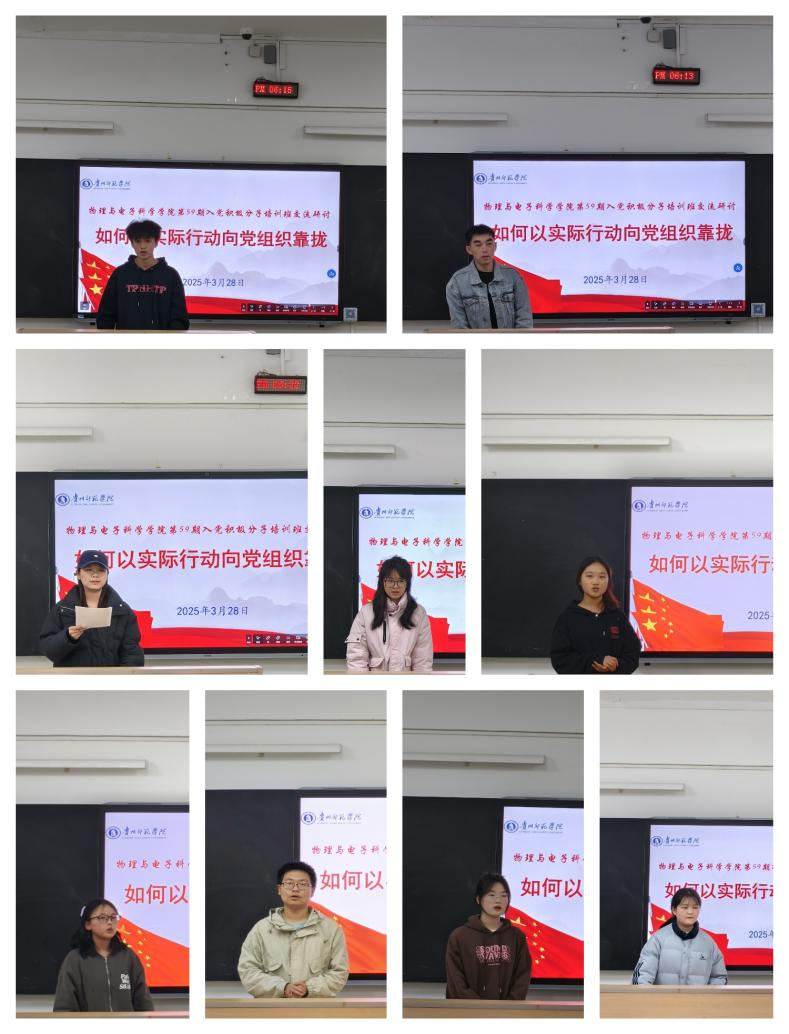 2025年3月28日,WilliamHill中文官方网站第59期入党积极分子培训班在宁静楼427教室开展以“如何以实际行动向党组织靠拢”为主题的交流研讨。本次党课由公司党委组织委员雷仕娜主持,公司全体入党积极分子参加了本次研讨。 入党积极分子们围绕“如何以实际行动向党组织靠拢”交流发言。交流中,大家结合自身实际,分别从思想上、学习上、生活中以及行动上如何增强理论学习,践行党的宗旨,端正入党动机,积极参加党组织的各项活动不断增强政治素养和提升自身综合素质进行交流,切实做到从思想到行动都与党保持高度一致。 交流结束,雷仕娜对本次交流发言进行总结,希望每一位入党积极分子都心怀崇敬,在学习、生活中时刻以党员标准严格要求自己,筑牢理想信念之基,争取早日加入中国共产党,为党和人民的事业建设添砖加瓦。 文/图:朱启月 陆宇航 初审:雷仕娜 复审:吴丽 终审:熊德永