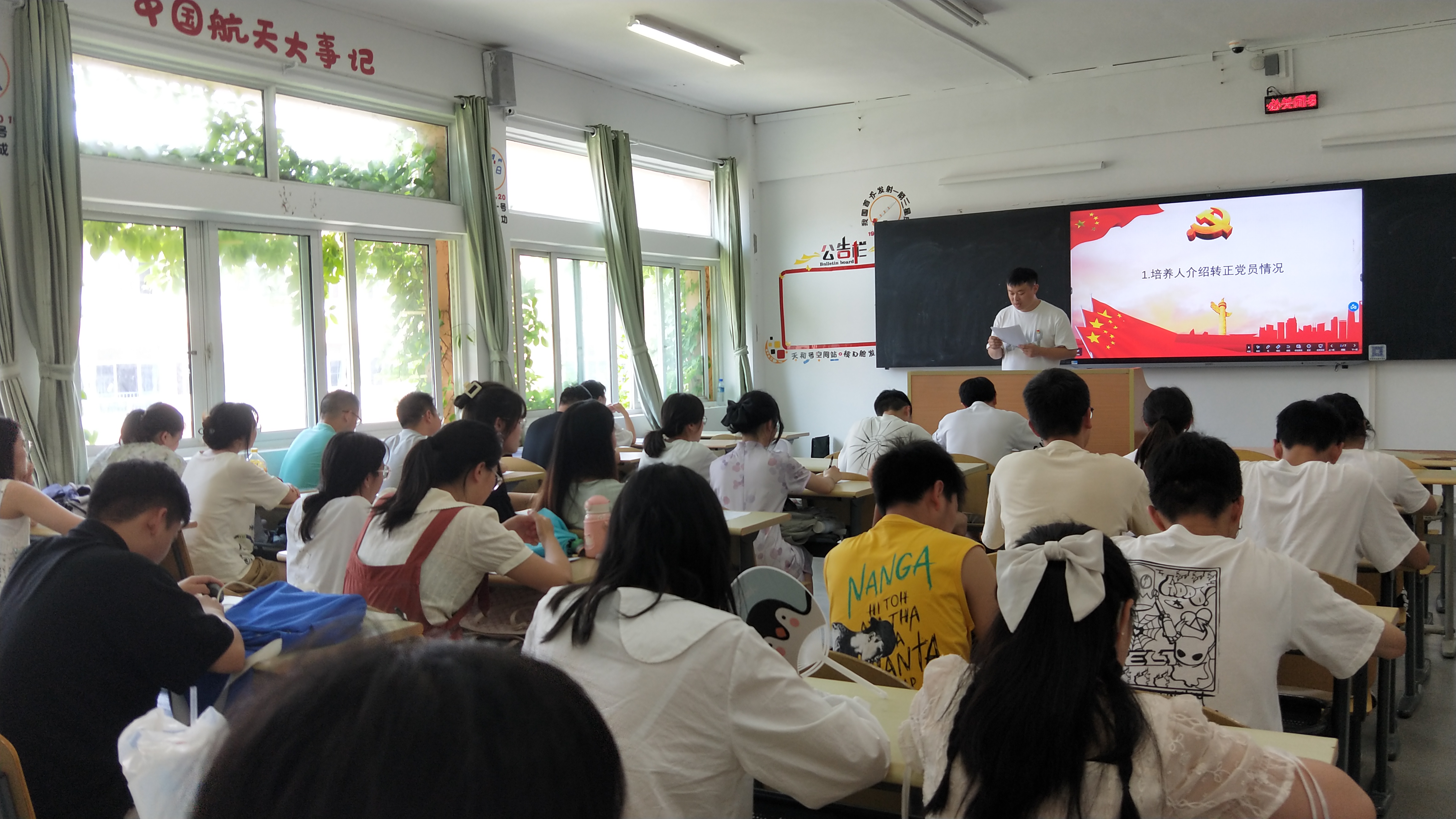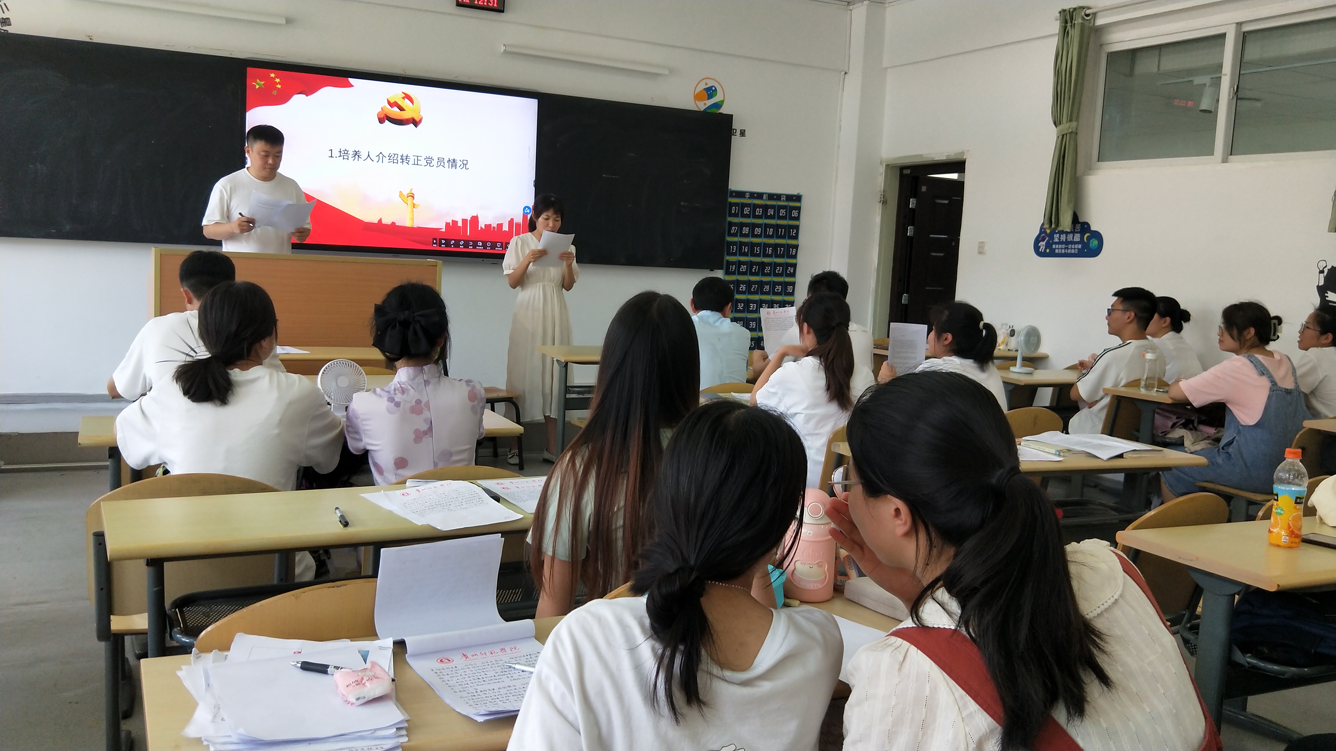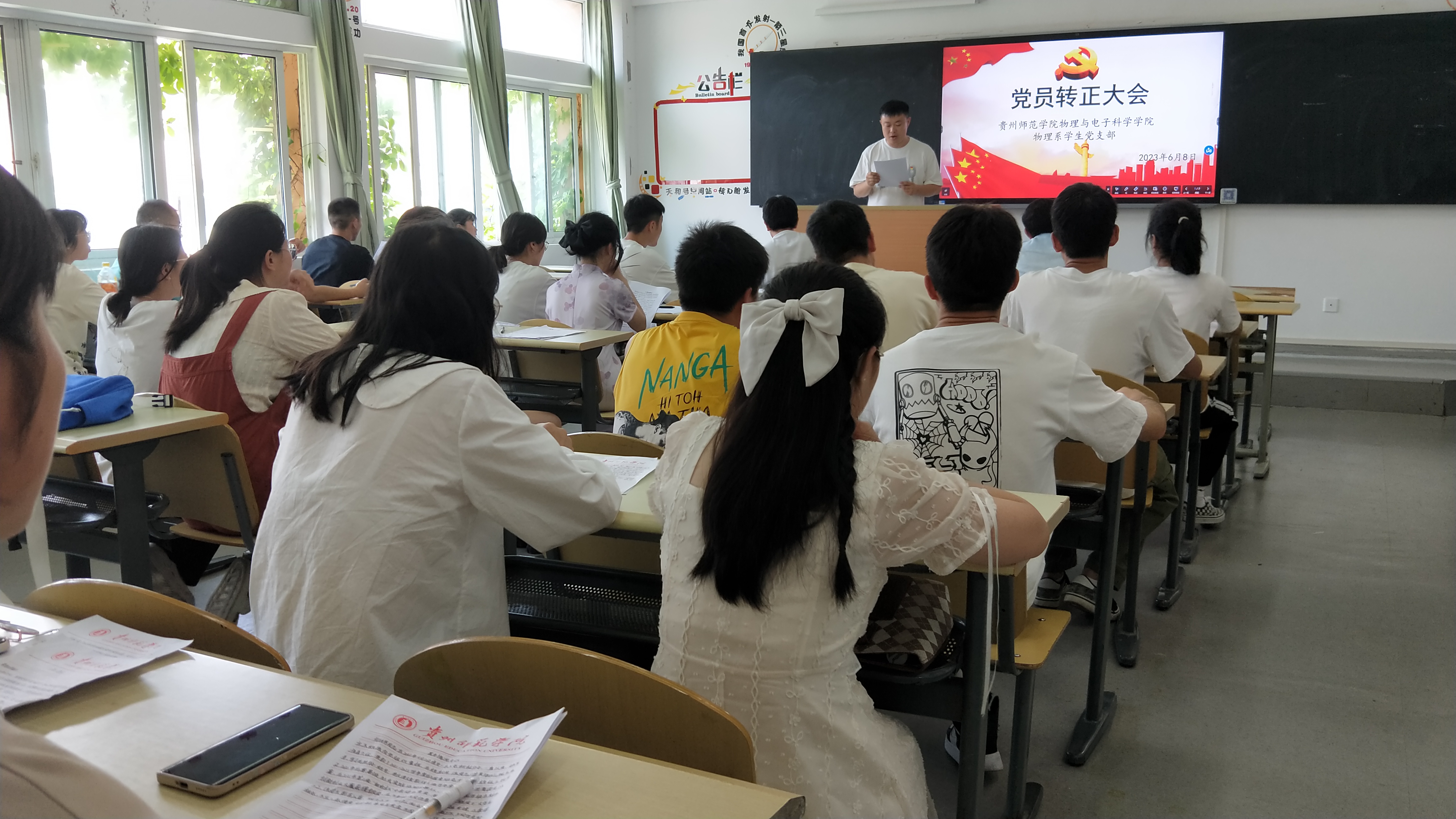 为进一步加强党员队伍建设,增强党员队伍的生机和活力,2023年6月8日,WilliamHill中文官方网站物理系员工党支部预备党员转正大会在宁静楼428教室召开,大会由党支部书记付诗君主持,全体党员参加了本次会议。 会议开始,付诗君介绍大会各项事宜以及大会流程。会议按照以下流程进行: 第一项,培养联系人进行发言,介绍转党员考察期情况并表明意见。 第二项,预备党员宣读转正申请书,认真、诚恳地汇报一年考察期内在思想、学习、工作方面地情况,向大会全体做出转正报告。 第三项,到会党员对该预备党员能否按期转正进行民主讨论,同时也真诚地提出了意见和建议。 第四项,到会正式党员对该同志能否按期转正进行无记名投票表决。经投票、现场统计结果,吴贵林、宋琳等10名预备党员全票通过。 第五项,最后由党支部书记付诗君同志宣读支部大会决议:吴贵林、宋琳等10名预备党员顺利转为中国共产党正式党员。 第六项,如期转正的吴贵林同志代表转正党员表明自己的态度和决心,要坚定共产主义信念,奋发有为,积极向上,用实际行动践行入党宣言。 最后,党支部书记付诗君就大会情况作简要总结,并向各位转正的党员给予肯定和表示祝贺。 本次会议在庄重而热烈的氛围中圆满结束。经过此次大会,我系党支部注入了新的活力,进一步扩大了党员队伍,对我系党员接收工作是一次巨大的推进,新党员与预备党员也将以他们良好的风貌,发挥党员的先锋模范作用。