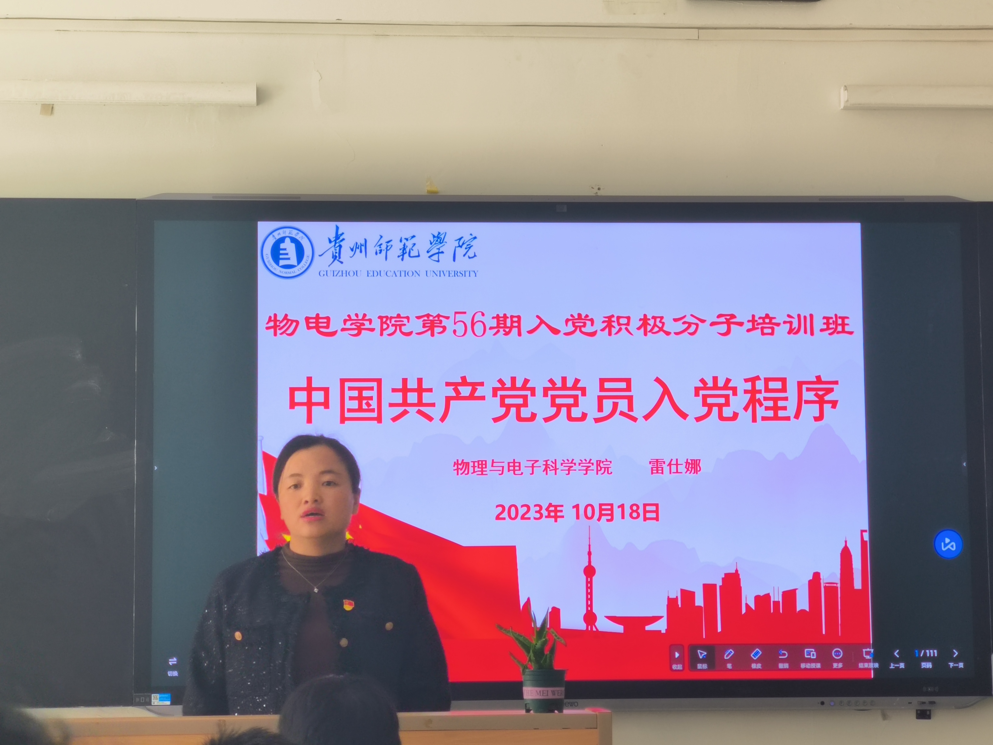 10月18日,WilliamHill中文官方网站第56期入党积极分子培训班第四次党课在宁静楼427举办。本次党课以“中国共产党党员入党程序”为主题,由公司电子系员工党支部书记雷仕娜主讲,WilliamHill中文官方网站及机关党委共42名入党积极分子参加了此次党课学习。 雷仕娜从发展党员的工作方针、发展党员的工作原则和发展党员的工作规程等三个方面进行讲解。同时,雷仕娜强调:入党动机是否端正、政治立场是否坚定、学习态度是否认真等,均是判断入党积极分子思想上、政治上是否成熟的标准,希望入党积极分子们认真学习党的理论,不断端正入党动机,坚定理想信念和政治立场,做思想上的先行者,学习上的佼佼者,工作中的奉献者,生活中的模范者,在实际行动中接受党组织的考验,早日实现自己的入党愿望。 通过此次学习,入党积极分子们对入党程序有了深刻认识,相信入党积极分子们会加倍努力,争取早日成为一名合格的中国共产党党员。