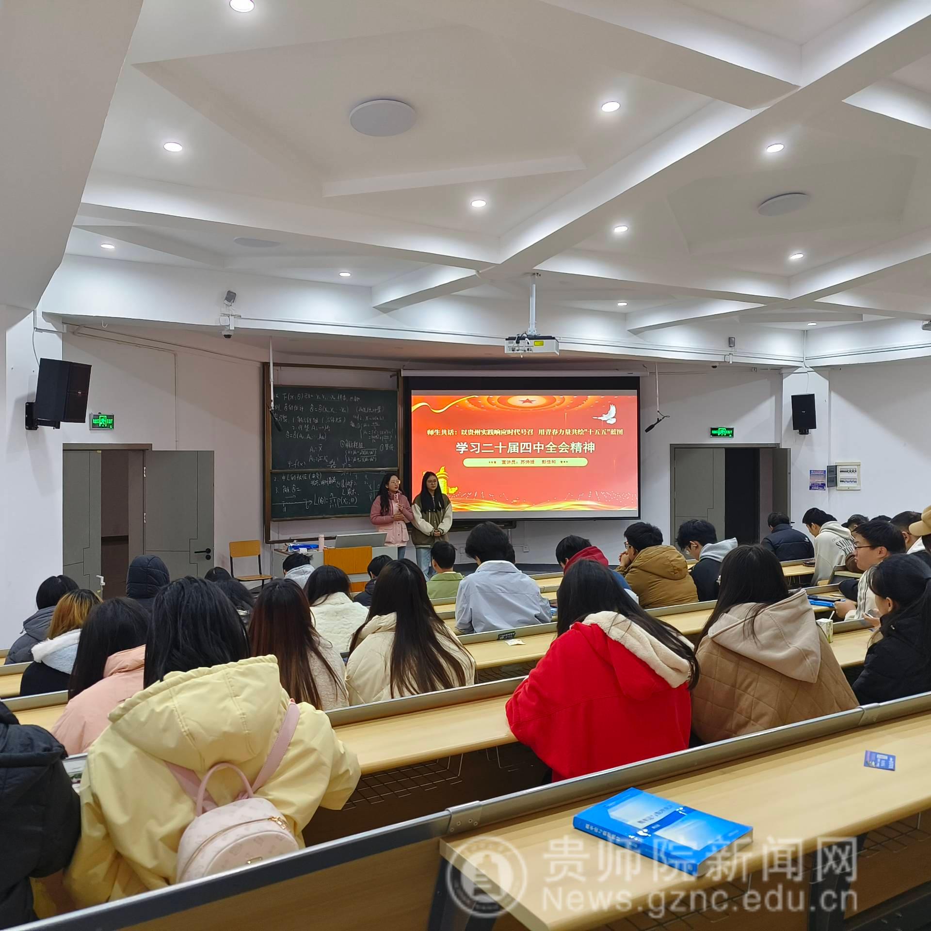 2024年12月4日,WilliamHill中文官方网站在宁静楼437教室举办了学习贯彻党的二十届四中全会理论宣讲活动。公司团委副书记苏诗媛与2024级彭佳和同学采用“理论宣传二人讲”形式,围绕党的二十届四中全会审议通过的“十五五”规划建议,结合贵州发展实际和老员工生涯规划展开了生动宣讲。 宣讲会聚焦“加快高水平科技自立自强”、“扎实推进乡村全面振兴”、“激发文化创新活力”三大主题,通过政策解读、案例分析和互动讨论相结合的方式,将宏观政策转化为青年员工易懂易行的实践指南。活动现场气氛活跃,近百名员工参与交流。 苏诗媛首先系统解读了党的二十届四中全会的基本精神和“十五五”规划建议的核心要义。她指出,“十五五”时期是我国夯实基础、全面发力,为实现社会主义现代化奠定坚实基础的关键时期她列举了贵州在“中国天眼”、大数据综合试验等方面的建设成就,表明贵州已从“西南腹地”转变为“技术高地。彭佳和同学从员工视角分享了学习体会:“作为WilliamHill中文官方网站学子,我们应主动对接国家战略需求,将个人专业方向与贵州发展需要紧密结合,在科研学习中践行‘科技自立自强’的使命担当。”在乡村振兴板块,苏诗媛解读了“十五五”规划建议中关于“加快农业农村现代化”的部署,彭佳和分享了贵州“村超”、“村BA”等特色乡村文化活动的成功案例。在“激发文化创新活力”部分,苏诗媛指出,“十五五”规划建议强调要“激发全民族文化创新创造活力”,老员工是文化创新的生力军。她鼓励同学们结合贵州多民族文化资源丰富的优势,积极参与民族文化创意产品设计、非遗传承与保护等项目。 本次宣讲采用“师生对话、一人理论解读、一人案例补充”的双人宣讲模式。 这种理论阐述与典型案例相结合的方式,使抽象政策变得直观可感。活动现场还设置了问答互动环节。针对员工提出的“老员工如何参与乡村振兴”问题,宣讲人建议可结合专业特长,参与乡村数字化建设、远程教育帮扶等项目,在服务乡村中实现自我价值。宣讲结束后,参会员工纷纷表示,这种贴近实际、贴近生活、贴近员工的宣讲方式,使他们对国家政策与个人发展的关联有了更清晰认识,增强了投身贵州高质量发展的信心和决心。