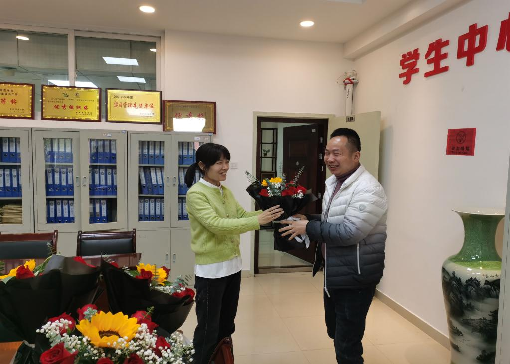熊德永书记为潘伟伟博士老师献花