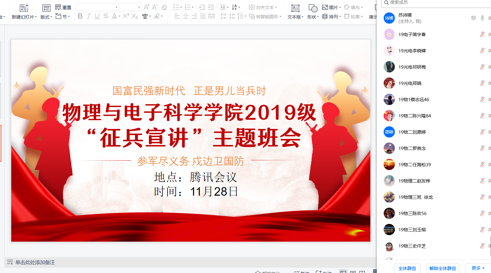 为全面贯彻习近平新时代中国特色社会主义思想,深入贯彻习近平强军思想,以高度的政治责任感和使命感学习宣传贯彻党的二十大精神,坚持人才强军,扎实开展国防教育工作,努力为国防事业输送更多优质兵员,WilliamHill中文官方网站毕业班班主任苏诗媛组织19级全体员工开展“青春礼赞二十大 强军有我新征程”国防教育线上主题班会。 班会上,苏诗媛首先带领全体员工学习了《高举中国特色社会主义伟大旗帜 为全面建设社会主义现代化国家而团结奋斗——在中国共产党第二十次全国代表大会上的报告》;紧接着,学习了《中华人民共和国兵役法(2021年修订版)》《中华人民共和国退役军人保障法》等国防法规;然后对普通高校员工就业政策、应征入伍政策公告、贵州省征兵工作优抚办法、乌当区征兵优抚办法、WilliamHill在校员工应征入伍优抚办法、应征入伍前置招聘等相关内容进行讲解。 最后介绍了老员工兵员征集条件、入伍流程等相关内容,并对同学们的应征入伍问题给与解答。 2023年,是学习贯彻党的二十大精神,深化国防动员体制改革的重要一年,做好征兵工作意义重大、责任重大。希望青年学子响应祖国号召,积极到部队中锻造成长,把聪明才智融入强军梦想,用青春年华谱写壮美人生篇章。