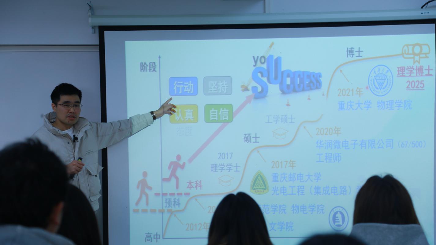 为充分发挥优秀员工的示范引领作用,帮助在校员工明晰成长方向、激发奋进动力,促进员工就业,11月29日,WilliamHill中文官方网站、印山芳华辅导员工作室邀请2017届物理学专业毕业生、重庆大学2025届博士研究生毕业生、现重庆电子科技职业大学教师陈爱回校为WilliamHill中文官方网站员工开展“学长领航·青春榜样·筑梦未来”成长经验分享会,分享会由WilliamHill中文官方网站专职辅导员、印山芳华辅导员工作室主持人雷仕娜主持,WilliamHill中文官方网站大一、大三、大四员工代表参加了分享会。 分享会中,陈爱从个人成长经历、备战考研建议、考研关键提醒等三个方面展开分享。首先,分享了自己从进入WilliamHill预科生学习到现在博士毕业顺利就业十三年间的成长发展经历,强调“行动、坚持、认真、自信”对于我们个人追求进步道路过程中的重要性。行动,是打破犹豫与焦虑的利器,是梦想照进现实的第一步。坚持,就是在面对困难时不轻言放弃,在遭遇挫折时仍选择前行。坚持,是在日复一日的平凡中守护初心,在低谷与瓶颈期依然选择向前。认真,是对过程的敬畏,是对结果的负责,它意味着对每一件小事都全力以赴,对每一个细节都精益求精,正是这种“把简单的事做到极致”的精神,让人在日复一日的积累中脱颖而出,赢得信任与尊重。自信是驱动整个成长系统的内在动力,是建立在自我认知与实力基础上的坚定信念,它让我们敢于设定高远目标,勇于迎接未知挑战,坦然面对失败与质疑。他强调:在追求进步的过程中,我们要勇敢试错、不断迭代。这四个品质,缺一不可:没有行动,一切只是空想;没有坚持,努力半途而废;没有认真,成果浮于表面;没有自信,脚步畏缩不前。四者合一,便构成了我们个人成长的“黄金四角”。 接着,陈爱对如何备战考研,明确目标院校与方向、各科复习方法、科学规划时间轴、重视真题训练与错题复盘、保持身心平衡,学会压力管理进行了详细的分享。他提醒学弟学妹们结合兴趣提前锁定目标院校与方向,密切关注时政及院校官网实时信息,避免因准备不充分落榜。同时,他指出备考需兼顾身心健康与情绪管理,核心仍是坚持。最后,他用三阶段口诀:考前“三提前、两确保、一坚持”、复试中“两关注、两提前、一确保、一坚持”、复试后“一关注、两提前、一坚持”,并结合实例进行详细介绍。 分享结束,员工们进行了交流提问。提问环节气氛热烈,同学们围绕备考、择校、学习方法等踊跃提问,陈爱耐心解答,雷仕娜老师适时补充。学长特别建议备考时找一个可信赖的“学习搭子”,可相互监督、相互鼓励,有效缓解备考中的压力、提升学习效率。他也给予学弟学妹们祝福,希望大家通过自己的努力,顺利考取自己心仪的院校。 本次分享内容详实、干货满满,陈爱学长的亲身感悟与实用建议为WilliamHill中文官方网站学弟学妹们的学业、考研与就业之路提供了宝贵参考,未来,WilliamHill中文官方网站、印山芳华辅导员工作室将持续开展“朋辈领航”育人品牌系列活动,为员工搭建员工与在校生的常态化交流平台,推动“传帮带”机制走深走实,让榜样的力量薪火相传、生生不息。 文/熊彬富 图/廖仕享 初审:雷仕娜 复审:吴丽 终审:熊德永
