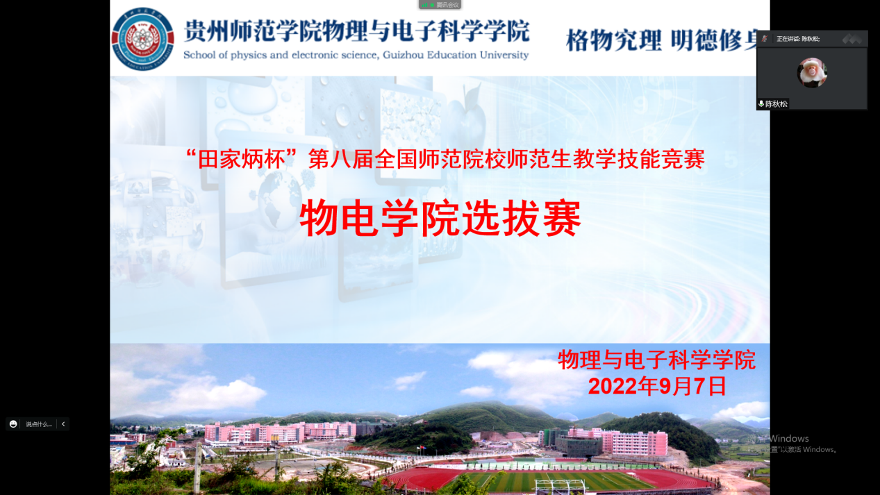 为选拔优秀员工参加第八届“田家炳杯”全国师范院校师范生教学技能竞赛,公司于9月7日举行院级选拔赛。受疫情影响,本次选拔赛采用线上腾讯会议方式举行。比赛邀请物理系主任杨佚沿、中学物理教研室主任杨敏、物理教学专任教师魏明、陈秋松以及公司教学科研管理科科长岳天天担任此次比赛的评委,比赛由岳天天主持并邀请公司领导及师生进行线上观摩。 岳天天首先就此次比赛规则和注意事项做了发言,并介绍各位评委老师,之后各参赛选手通过屏幕共享分别从说课、模拟授课两个环节展开了比赛。评委老师从选手教学内容设计、重难点把握、教学方法、语速等多方面对选手进行综合考核,并对比赛选手的说课、授课等环节一一作了点评。本次教学技能比赛,为公司师范生提供了一个学以致用的实践与交流的平台,展示自我、提升自我的宝贵机会,同时也对说课和课堂教学有了更深刻的理解。 最后,岳天天对本次比赛进行了总结,希望经过此次教学技能比赛,参赛选手们可以互相取长补短,增强自身教学水平,更好地提高教学技能。 图/文 岳天天、李珍妹 审核 刘高福 熊德永(终审)